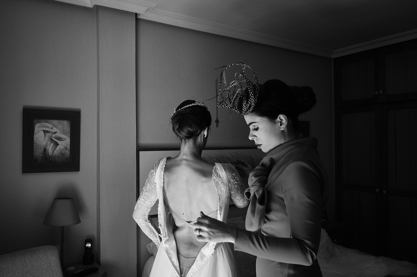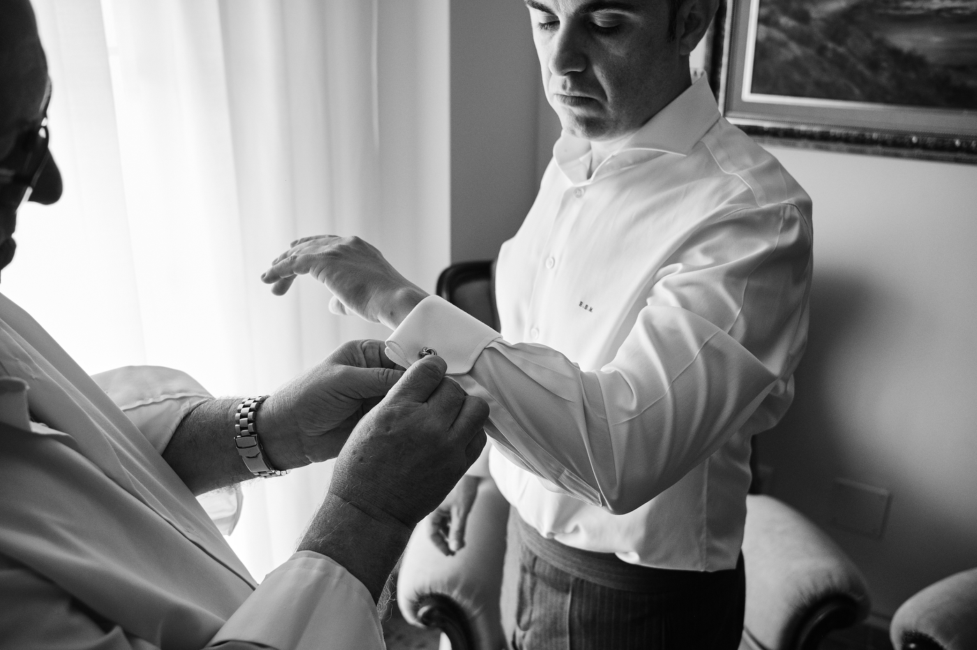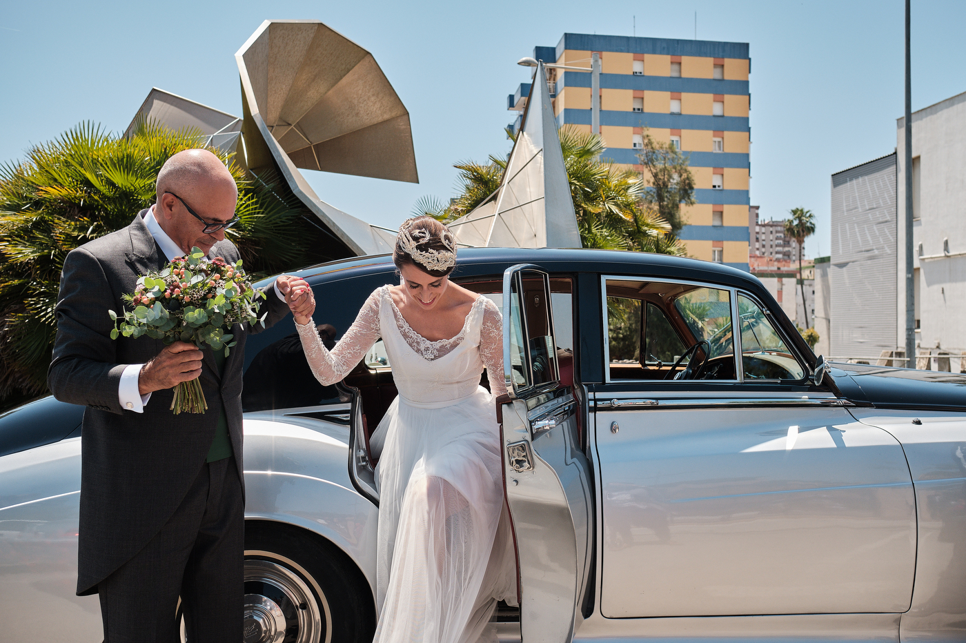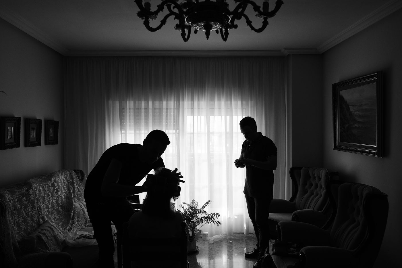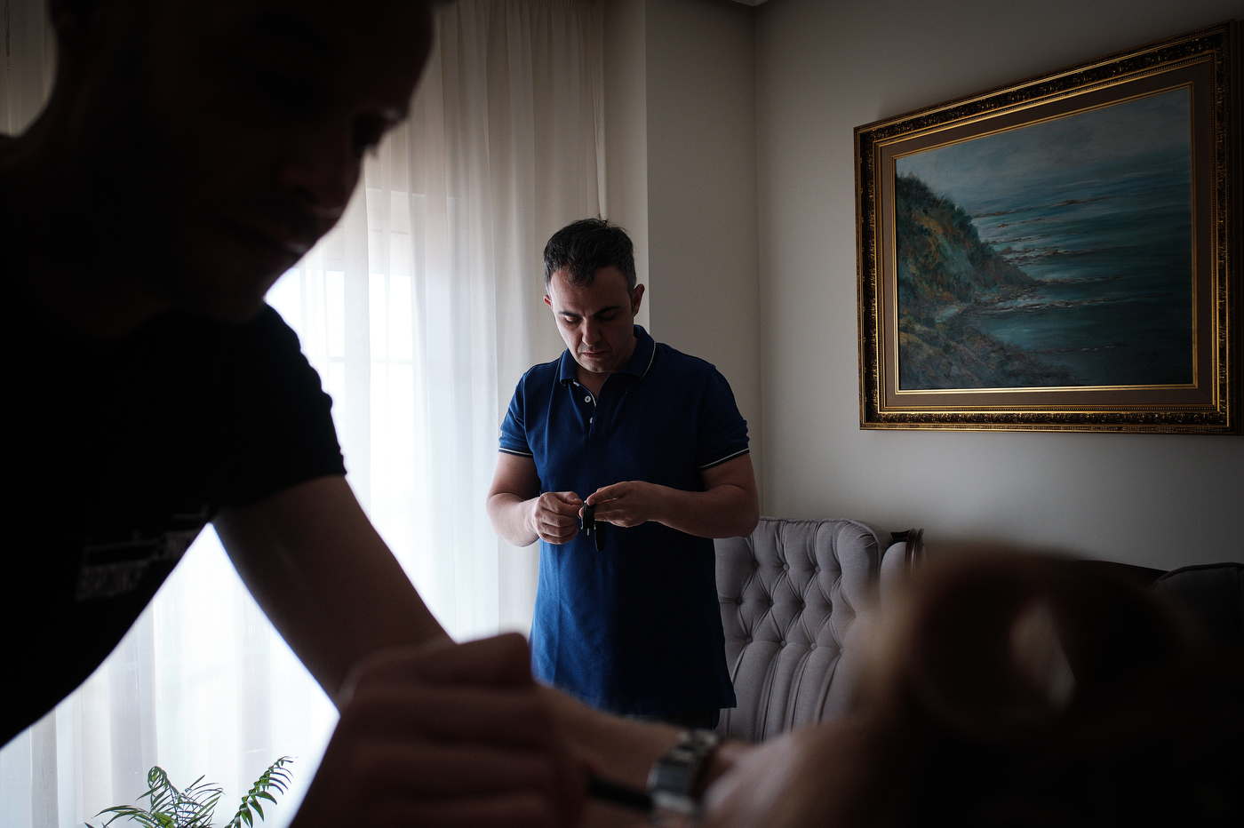Comenzamos el día en Algeciras, lugar de residencia de nuestra pareja. Una vez ya en casa de Quique me topé con un cuadro maravilloso. Una pintura que realizó un familiar de Quique de un rincón de la costa de Algeciras, la imagen me inspiró muchísimo, sus colores, la textura, etc. Esa fue la primera fotografía que tome este día, añadí los zapatos de Quique, respiré profundamente y me sentí muy afortunado de poder trabajar haciendo esto tan bonito. Me esperaba un día grande, estaba muy feliz.