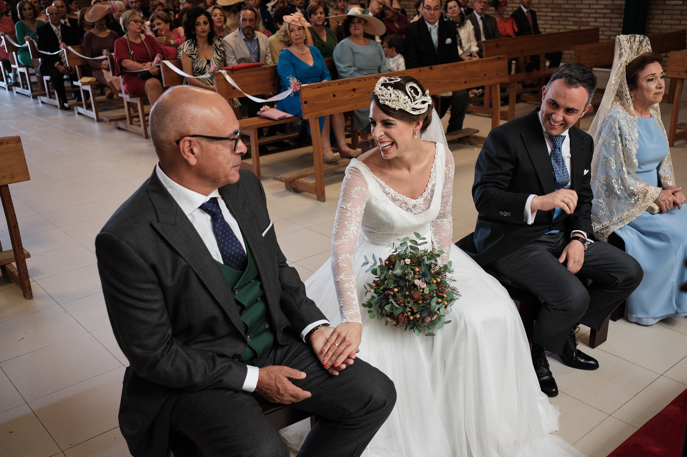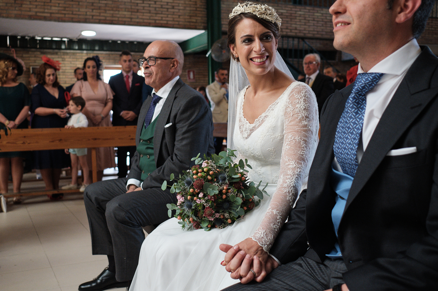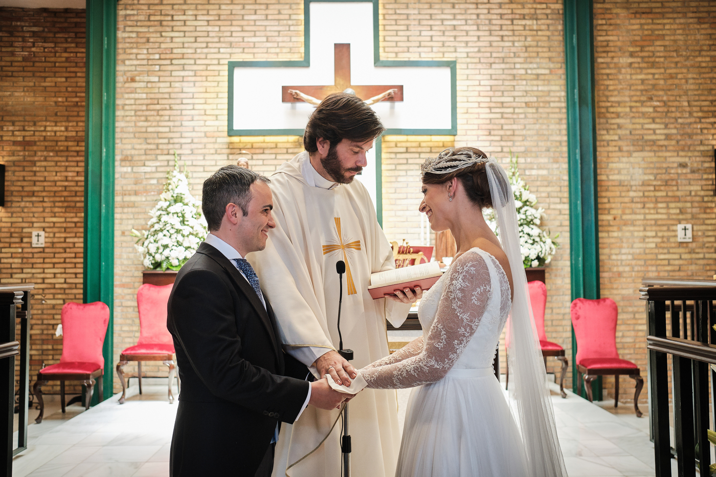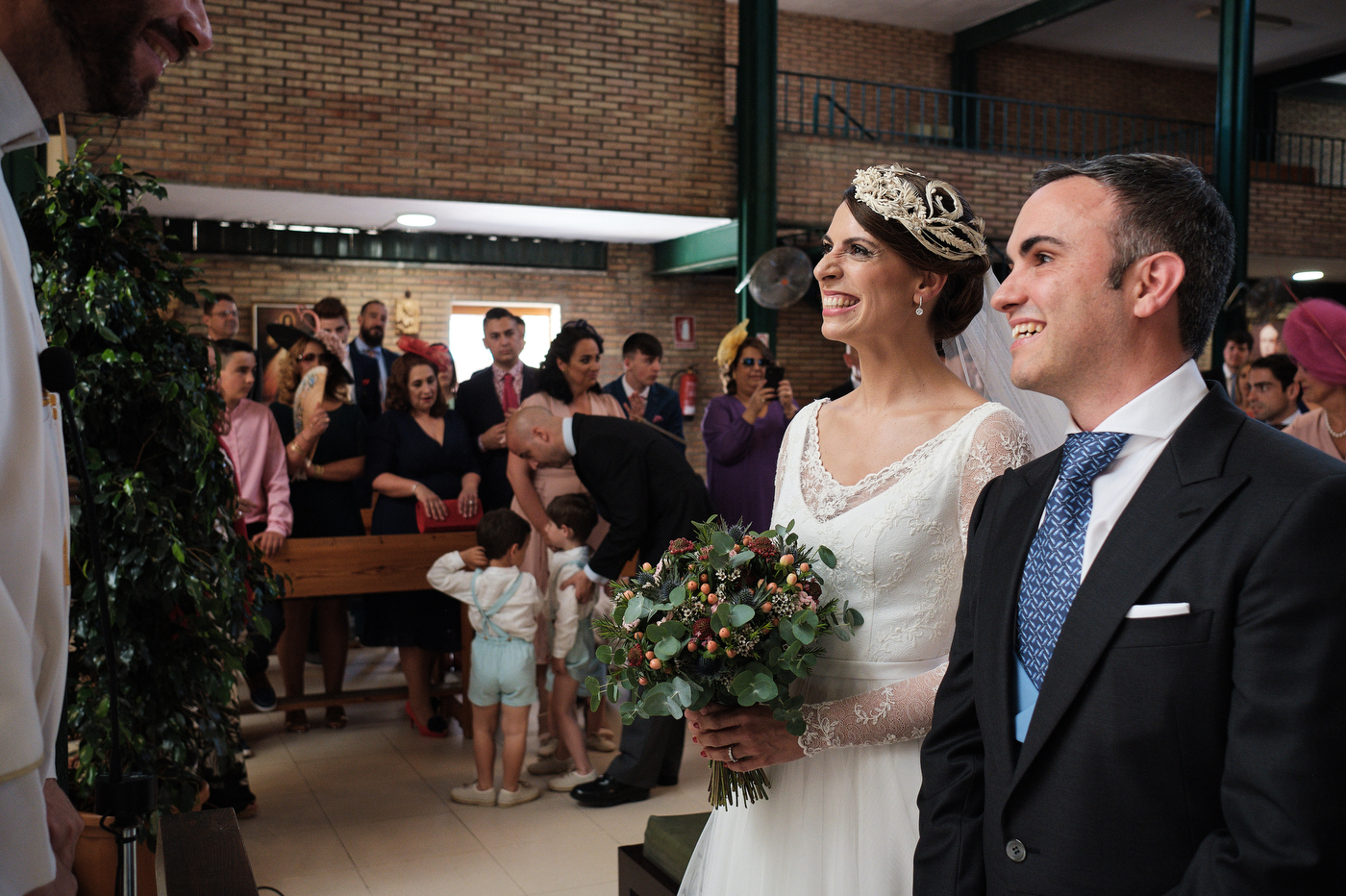 La ceremonia comenzó puntualmente a las 13:00 hrs. en la parroquia de San Antonio de Padua en Algeciras. El enlace cómo era de esperar estuvo repleto de miradas cómplices y gestos de cariño. He de decir que el párroco nos ofreció una ceremonia muy bonita y que estuvo muy cercano y simpático también.