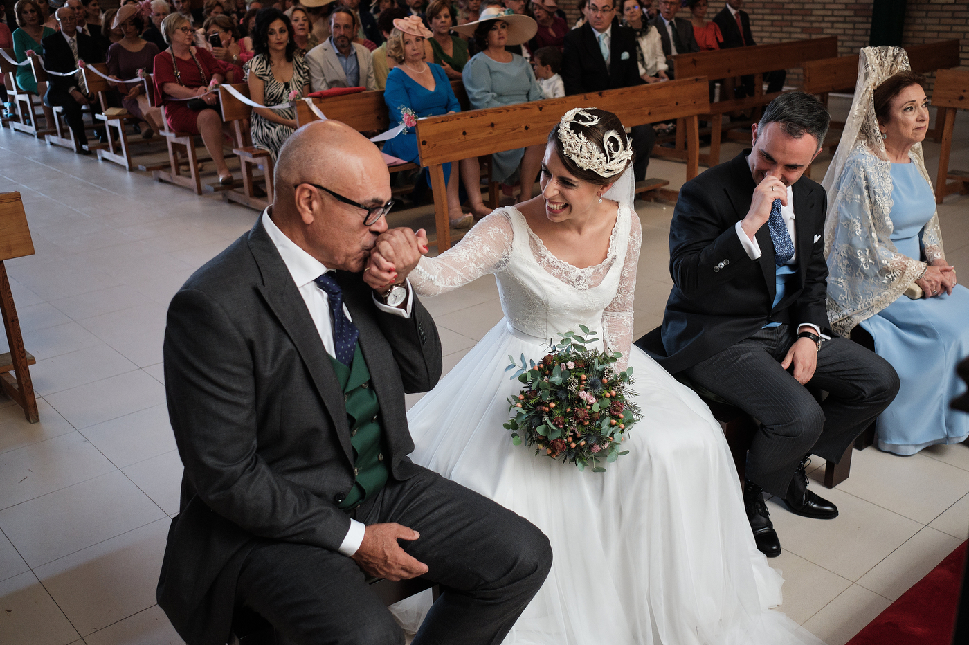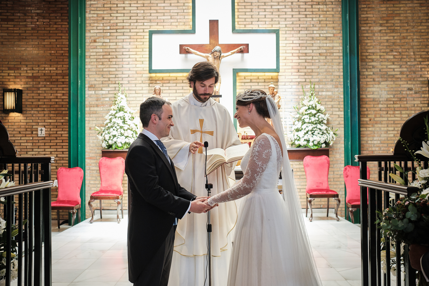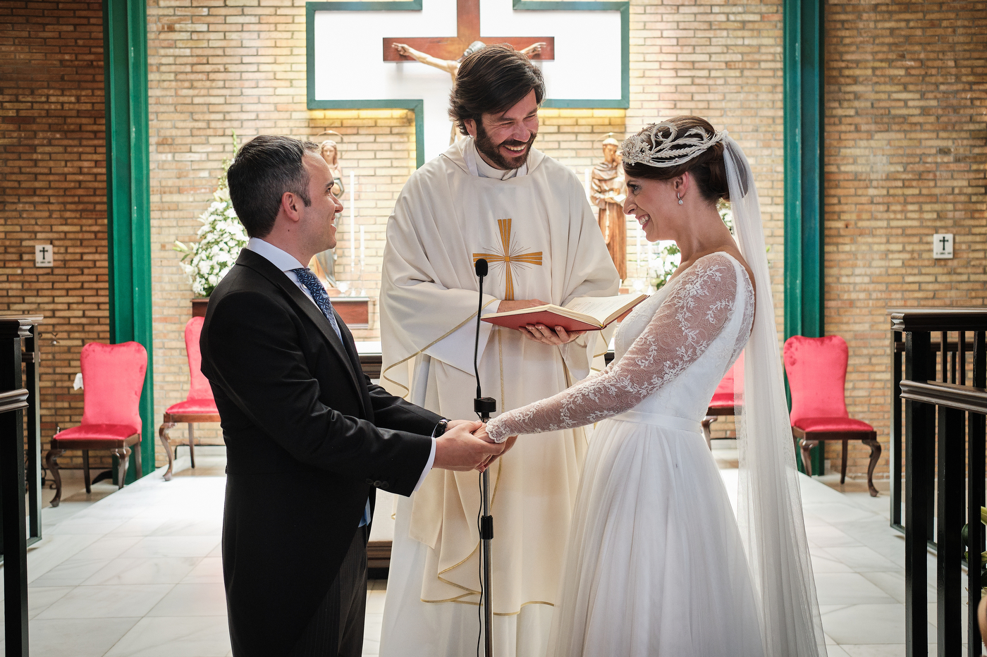 La ceremonia comenzó puntualmente a las 13:00 hrs. en la parroquia de San Antonio de Padua en Algeciras. El enlace cómo era de esperar estuvo repleto de miradas cómplices y gestos de cariño. He de decir que el párroco nos ofreció una ceremonia muy bonita y que estuvo muy cercano y simpático también.