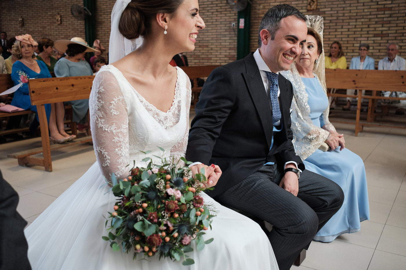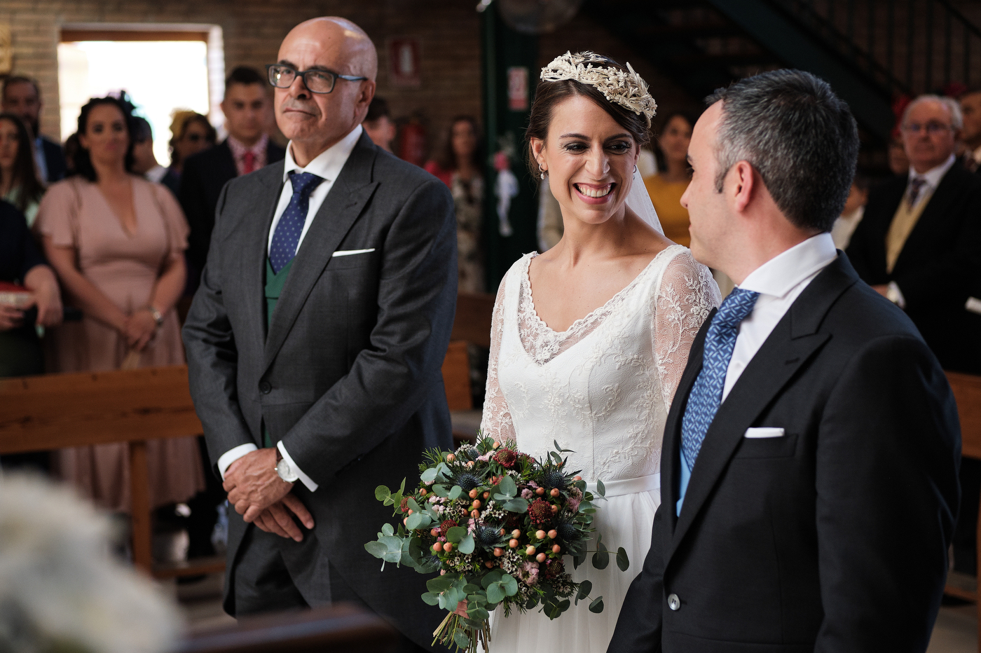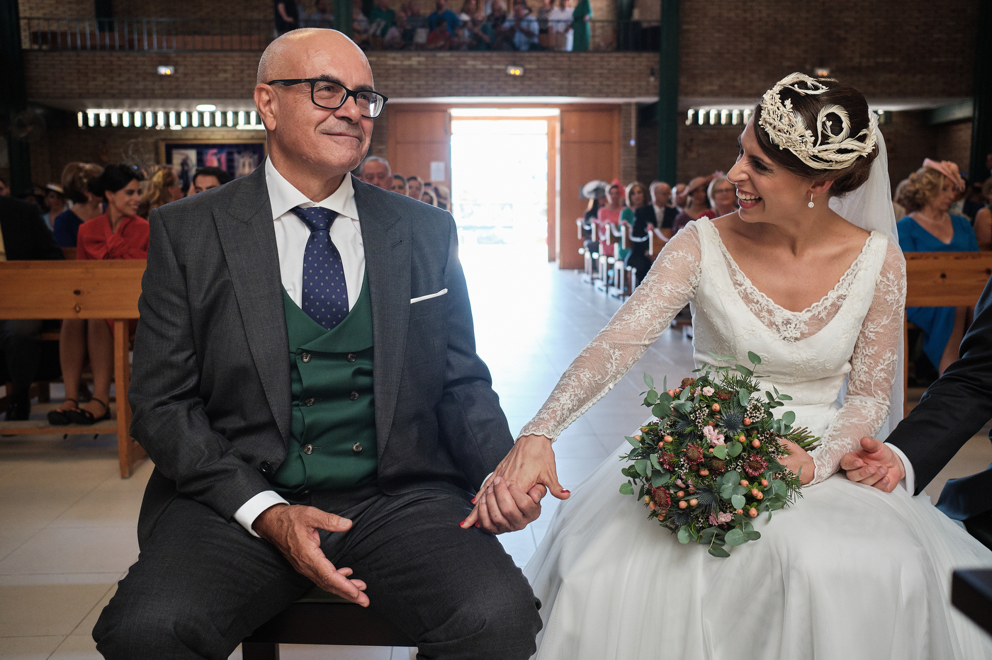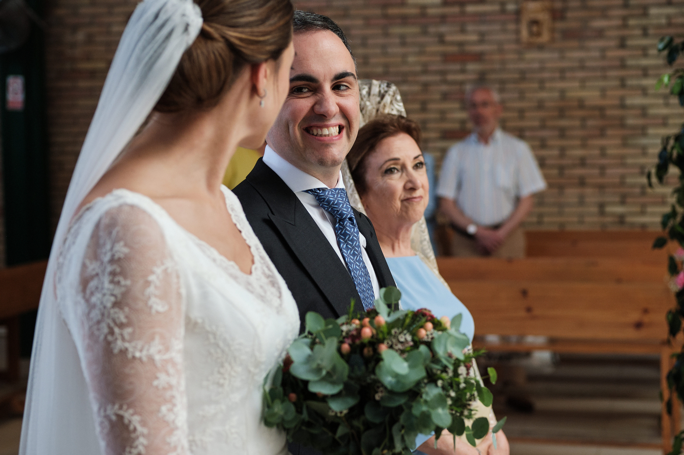 La ceremonia comenzó puntualmente a las 13:00 hrs. en la parroquia de San Antonio de Padua en Algeciras. El enlace cómo era de esperar estuvo repleto de miradas cómplices y gestos de cariño. He de decir que el párroco nos ofreció una ceremonia muy bonita y que estuvo muy cercano y simpático también.
