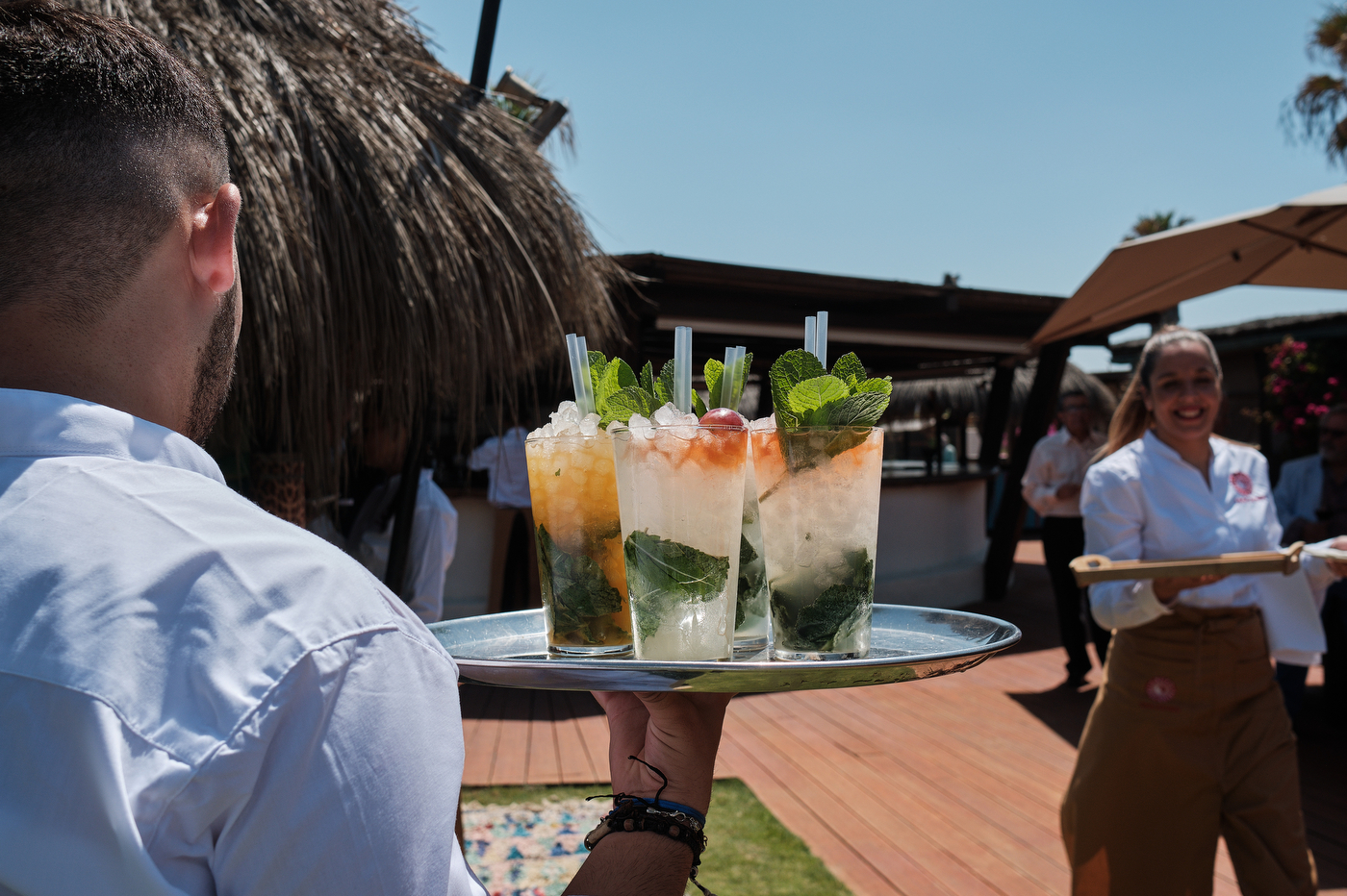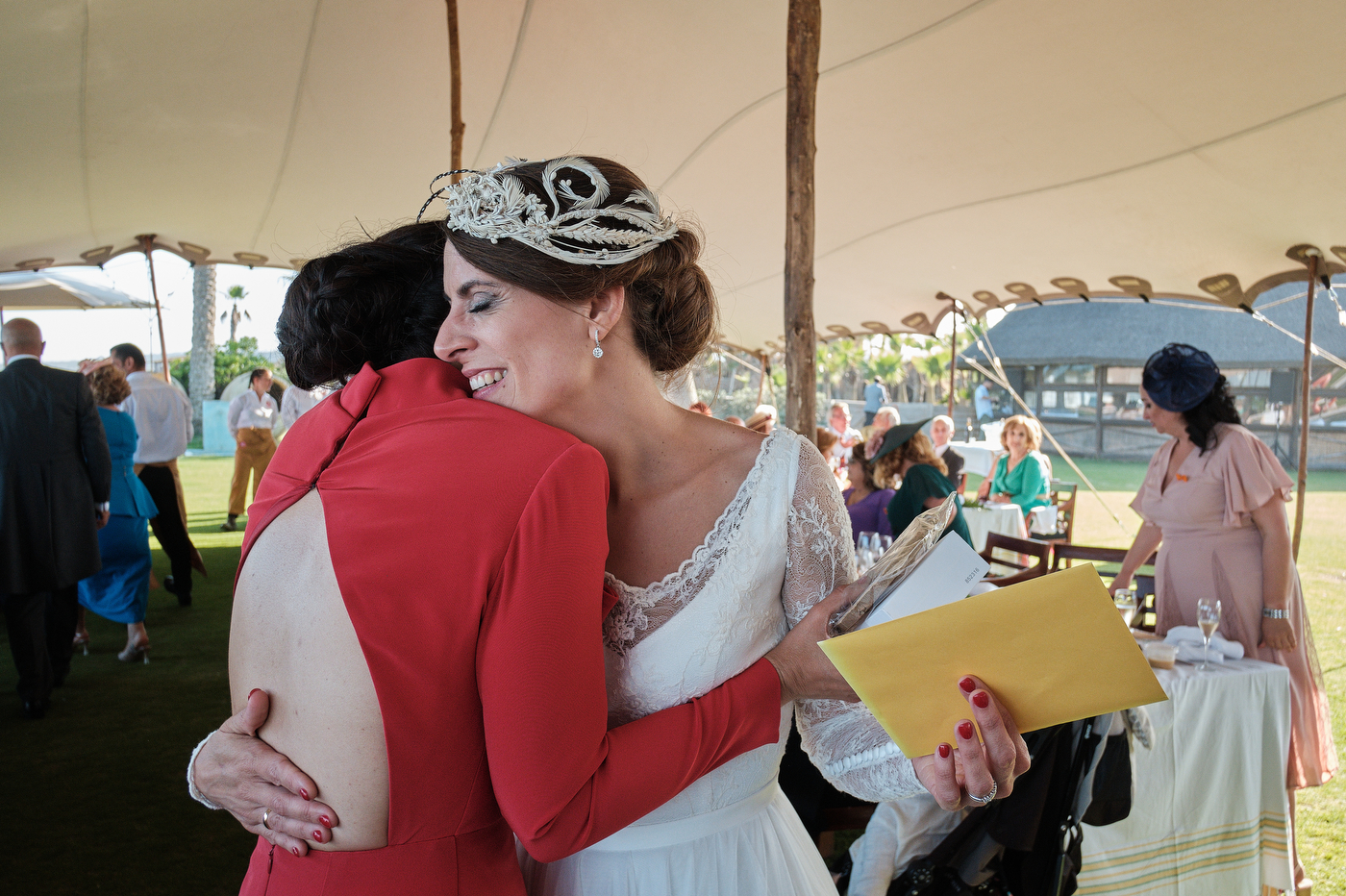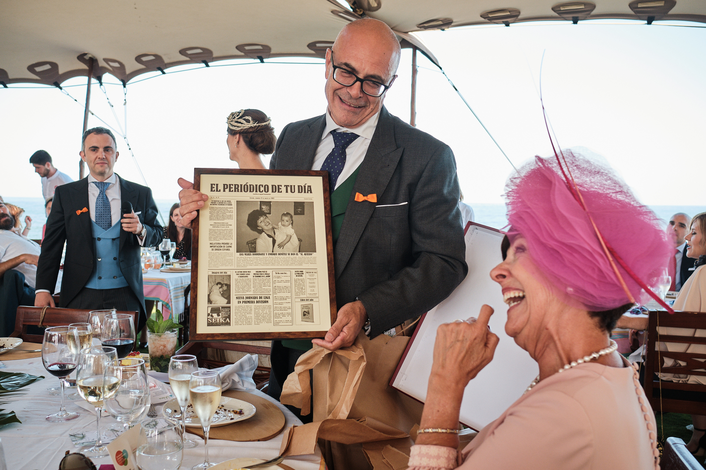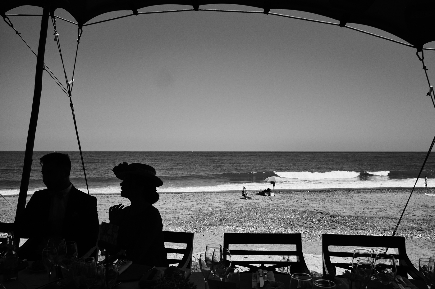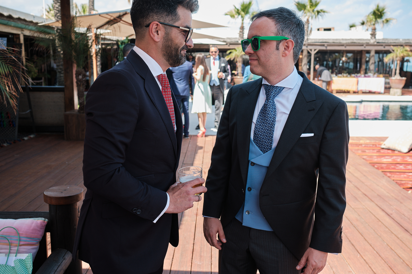Una carpa enorme y bien instalada a tan solo unos pocos metros de la orilla del mar dio sombra a los numerosos invitados durante la comida. Al finalizar ésta todas se dirigieron a otro recinto y dio comienzo la fiesta que duró hasta altas horas de la madrugada.