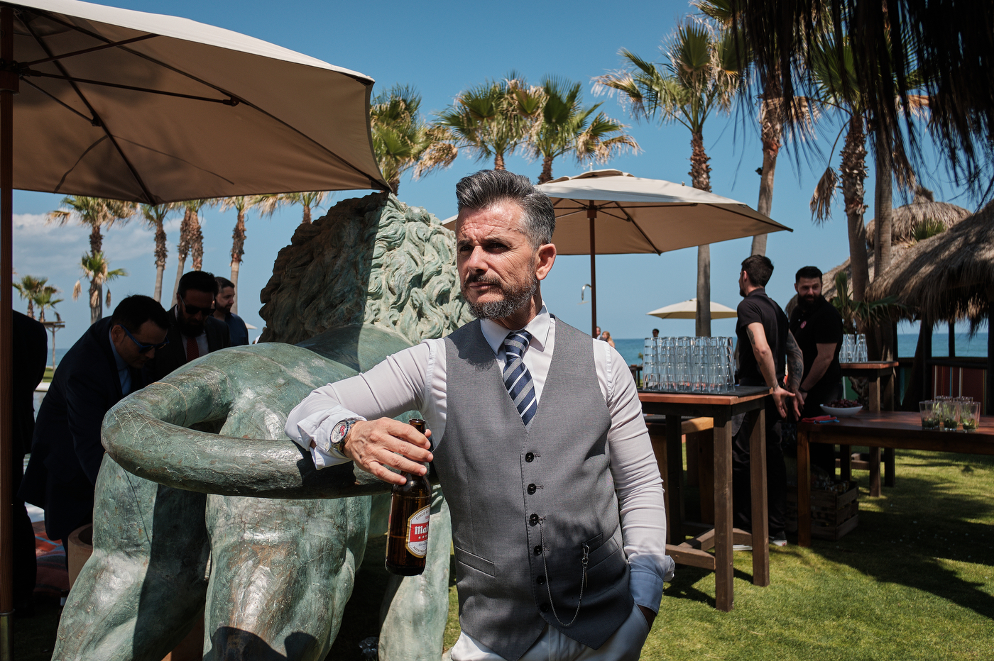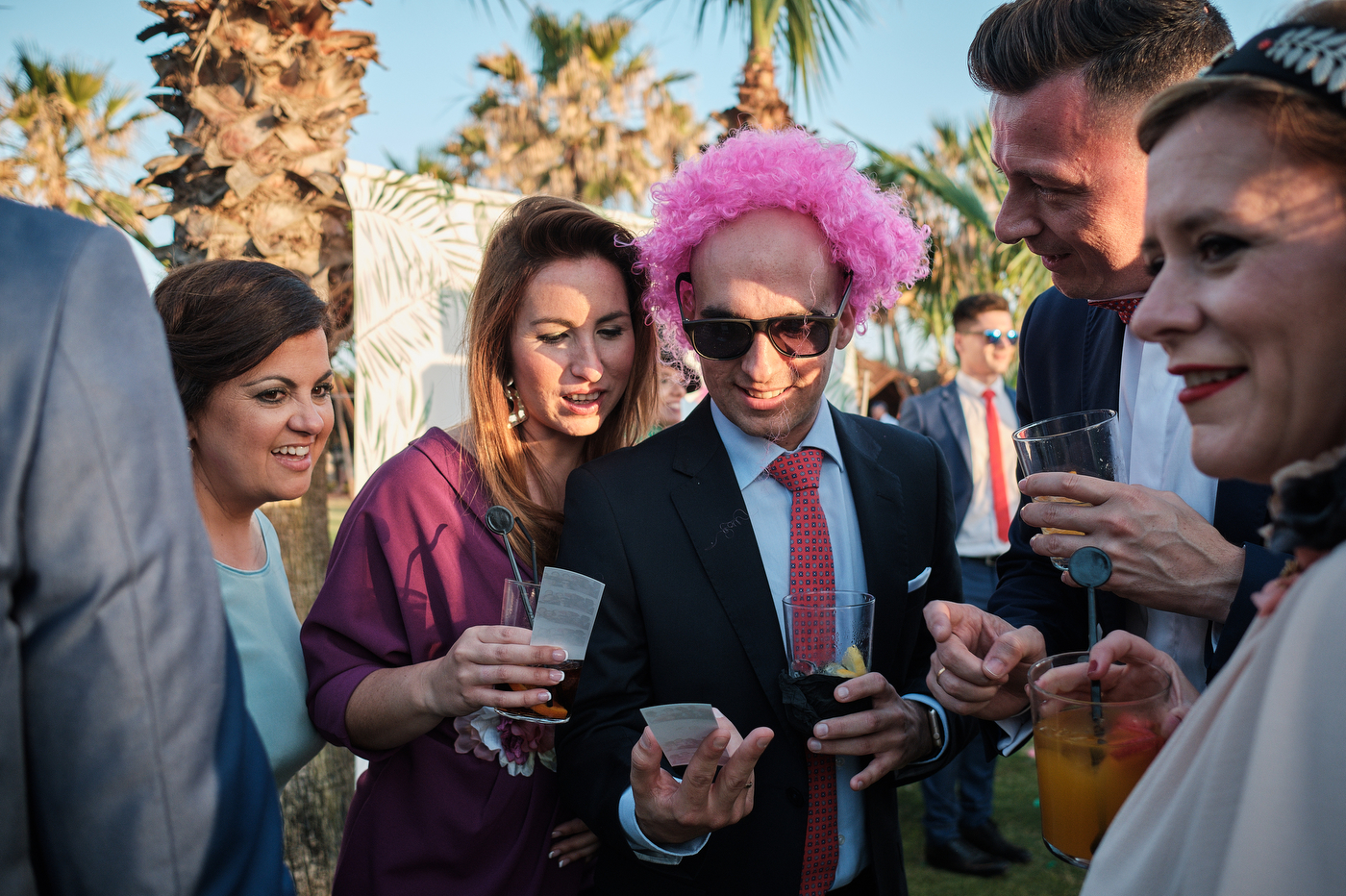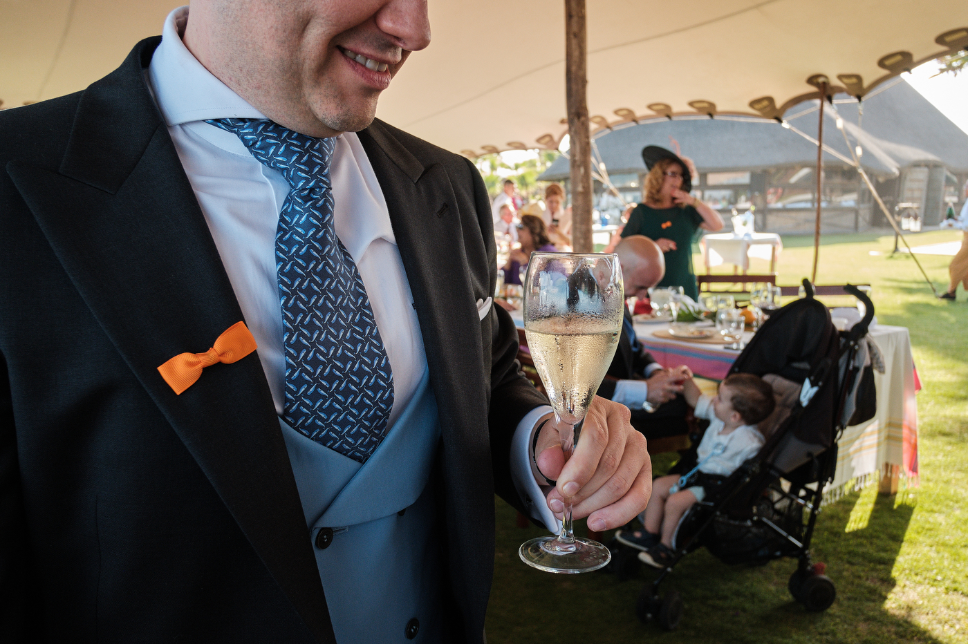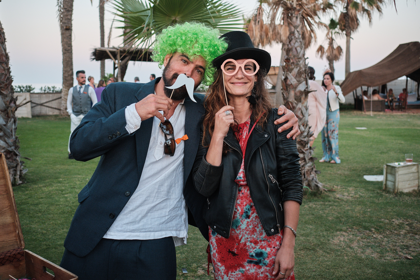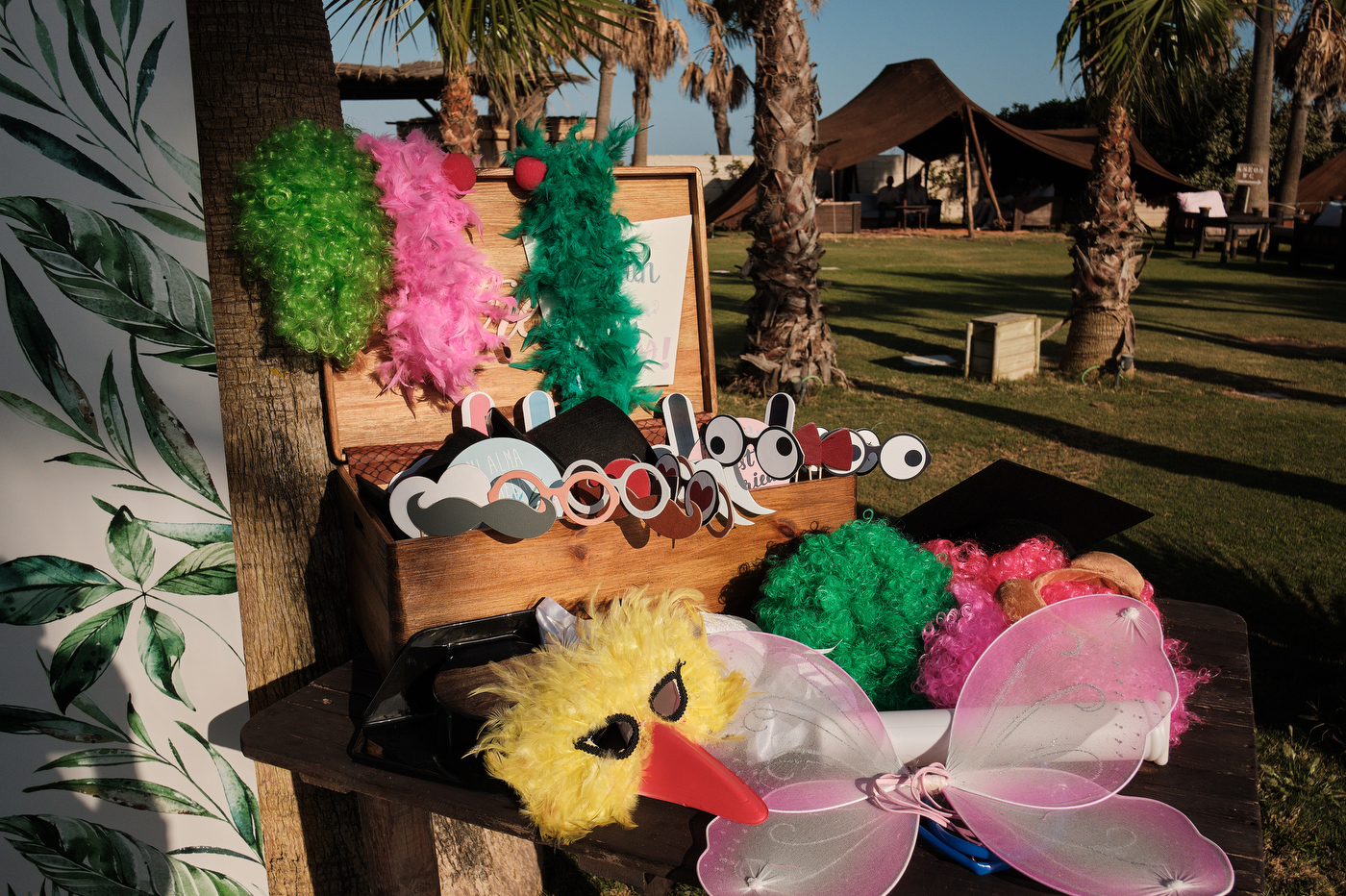 Una carpa enorme y bien instalada a tan solo unos pocos metros de la orilla del mar dio sombra a los numerosos invitados durante la comida. Al finalizar ésta todas se dirigieron a otro recinto y dio comienzo la fiesta que duró hasta altas horas de la madrugada.