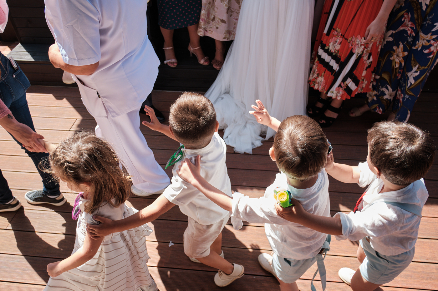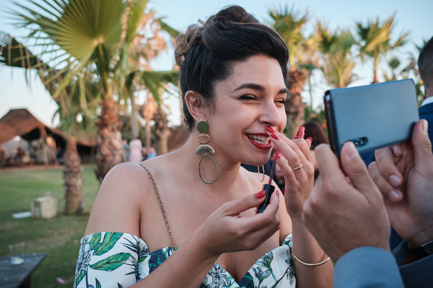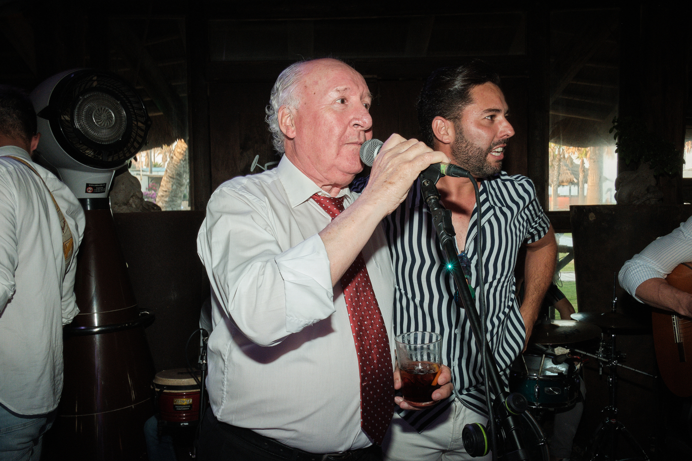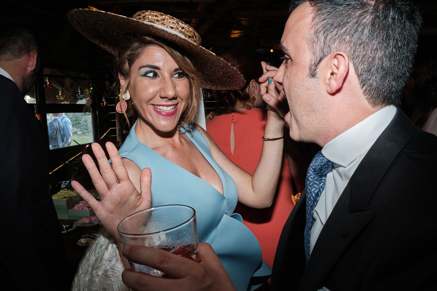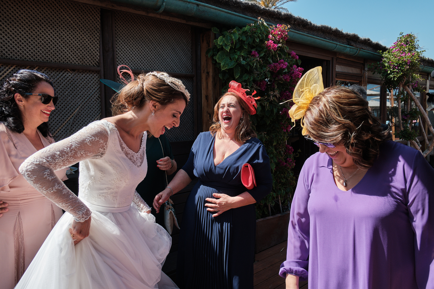 Una carpa enorme y bien instalada a tan solo unos pocos metros de la orilla del mar dio sombra a los numerosos invitados durante la comida. Al finalizar ésta todas se dirigieron a otro recinto y dio comienzo la fiesta que duró hasta altas horas de la madrugada.