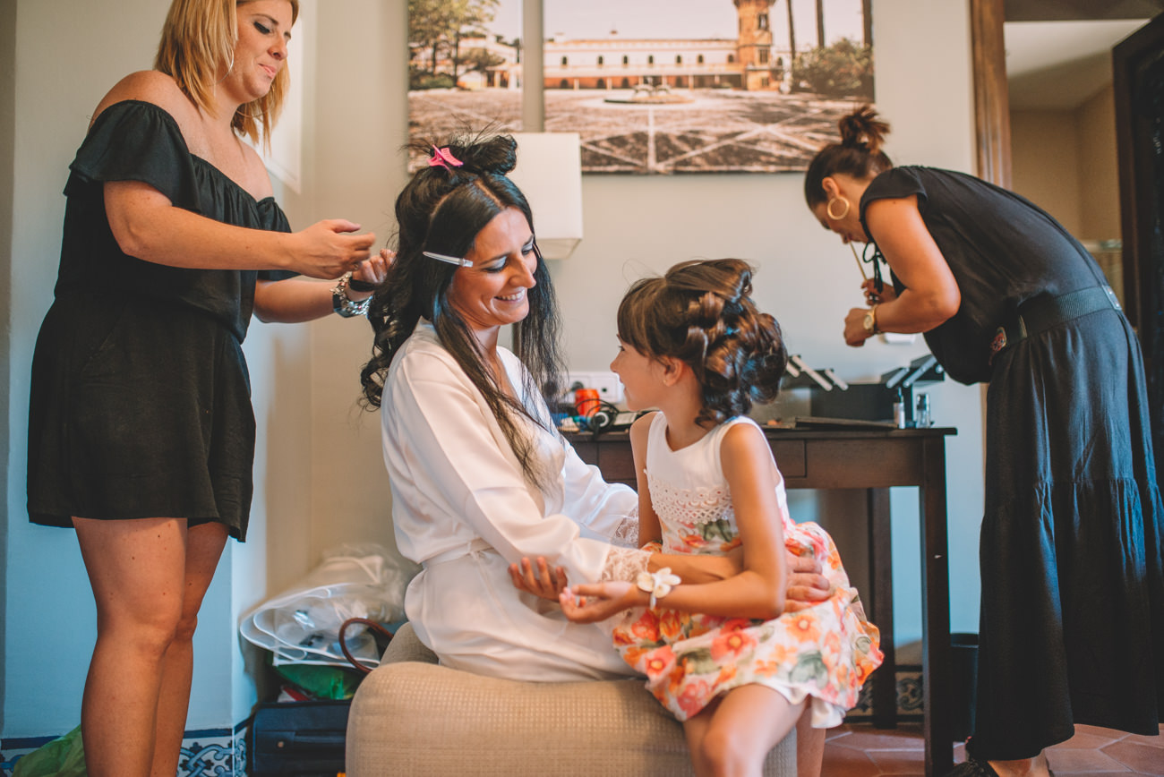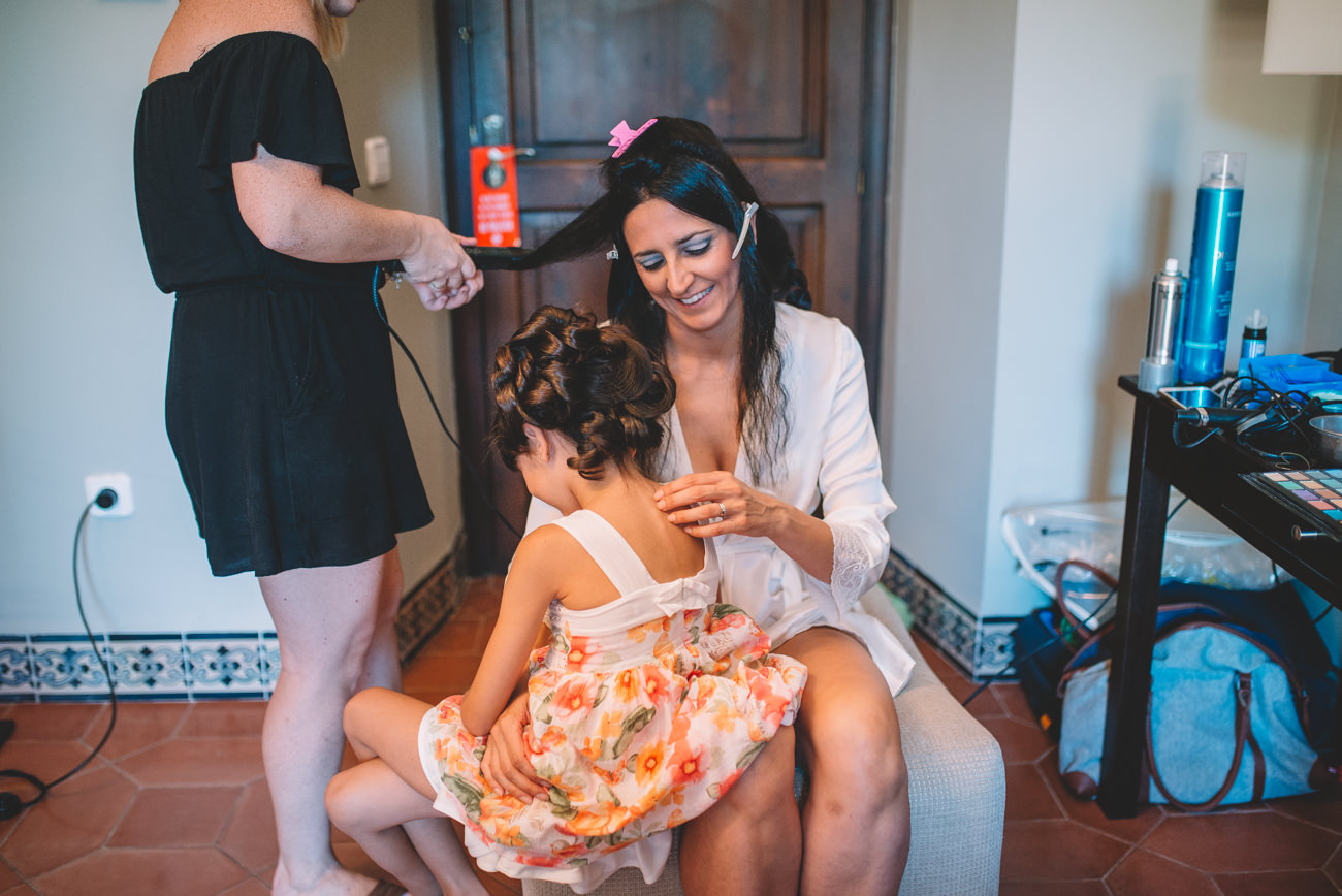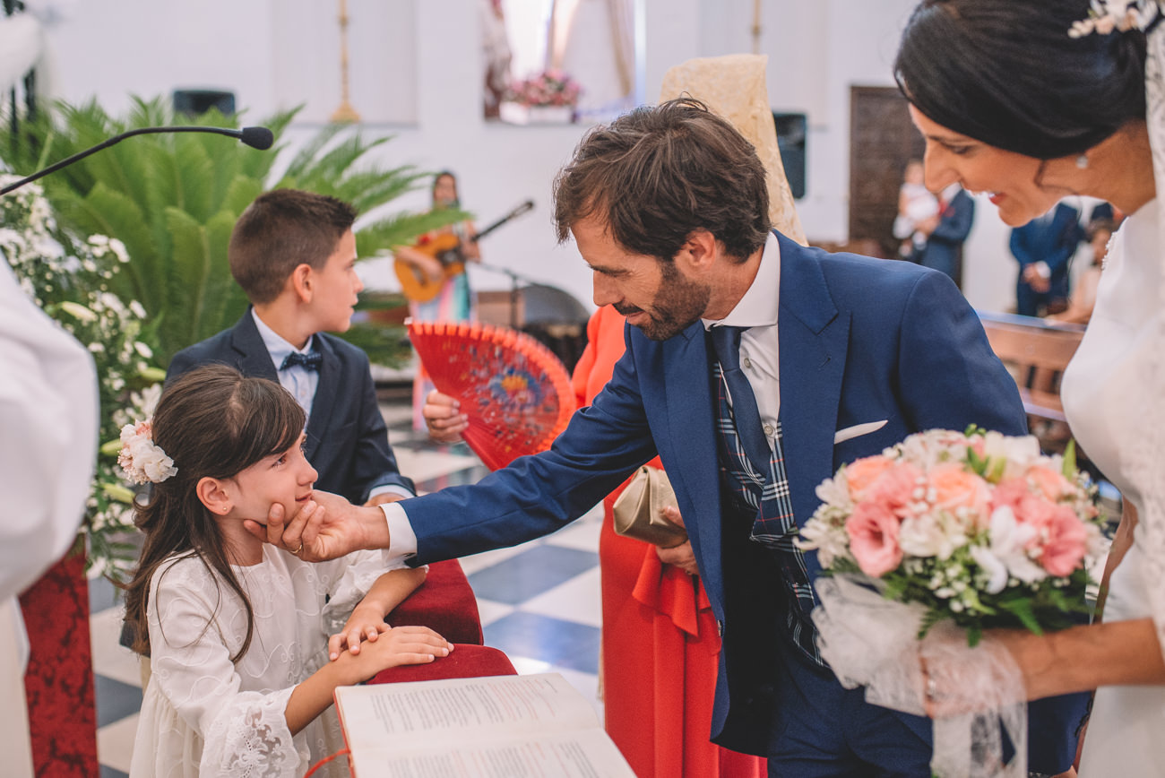 Me encanta esta boda en La Almoraima. Como fotógrafo de bodas contar con una pareja como María y Antonio es todo un lujo. Tienen dos hijos preciosos y tuve la oportunidad de contar la historia de esta familia en un día tan especial. Ella eligió para los preparativos la Casa convento de la Almoraima y la verdad que fue todo un acierto ya que el entorno del lugar puso un marco muy especial y diferente. María estuvo acompañada en todo momento por su hija, Paula, que fue protagonista del momento. Antonio mientras tanto se preparaba en Los Barrios, en casa de sus padres acompañado por su hijo. La ceremonia fue como se esperaba, muy emotiva y llena de detalles. La Iglesia de los Barrios fue testigo del enlace entre estas dos increíbles personas.